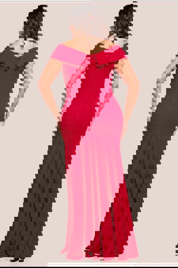 This sultry red number combines timeless glamour with modern trends, featuring an off-the-shoulder design that highlights your décolletage and a pleated fold-over neckline for an ultra-chic touch.