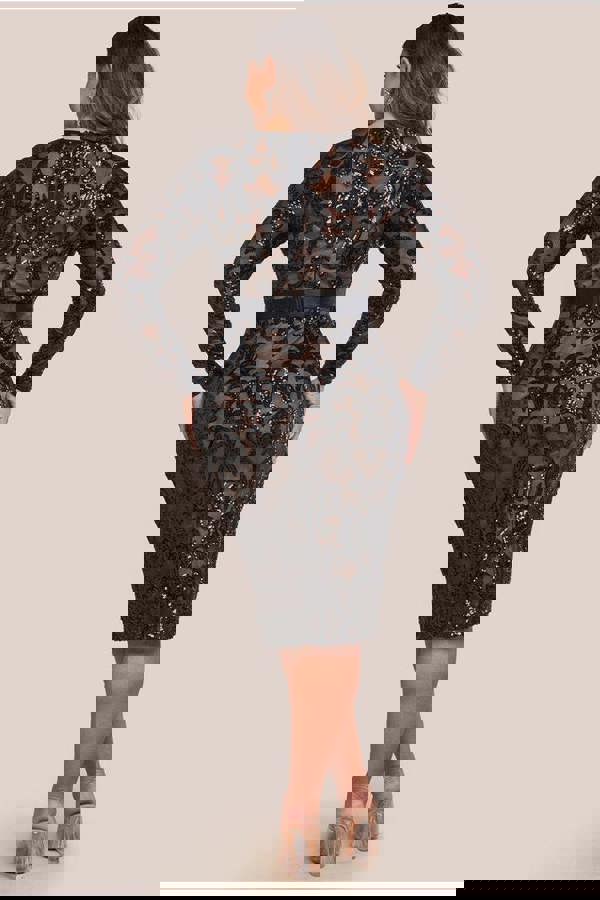 Its bodycon fit, long sleeves and all over embroidered sequin detailing makes this sparkling curvaceous number a perfect pick for any occasion this season.