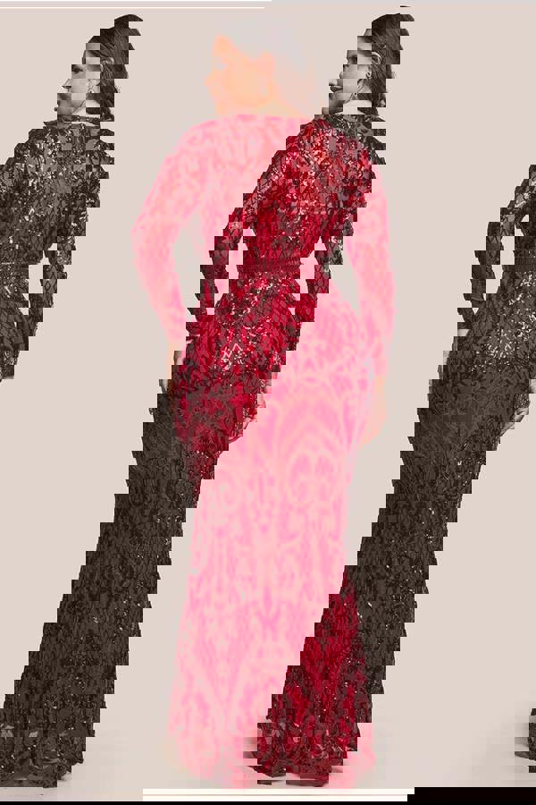 Make a striking impression at your next formal event with the Goddiva Plus Sequin Square Neck Maxi Dress in vibrant red.