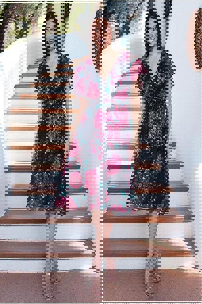 The short flutter sleeves add a touch of whimsy, while the A-line skirt ensures a flattering fit for all body types.