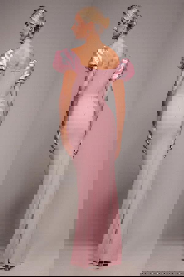 Chic, on-trend, and effortlessly elegant, the Goddiva Puffy Satin Sleeve Scuba Maxi Dress in Blush Pink is your ultimate go-to for any special occasion.