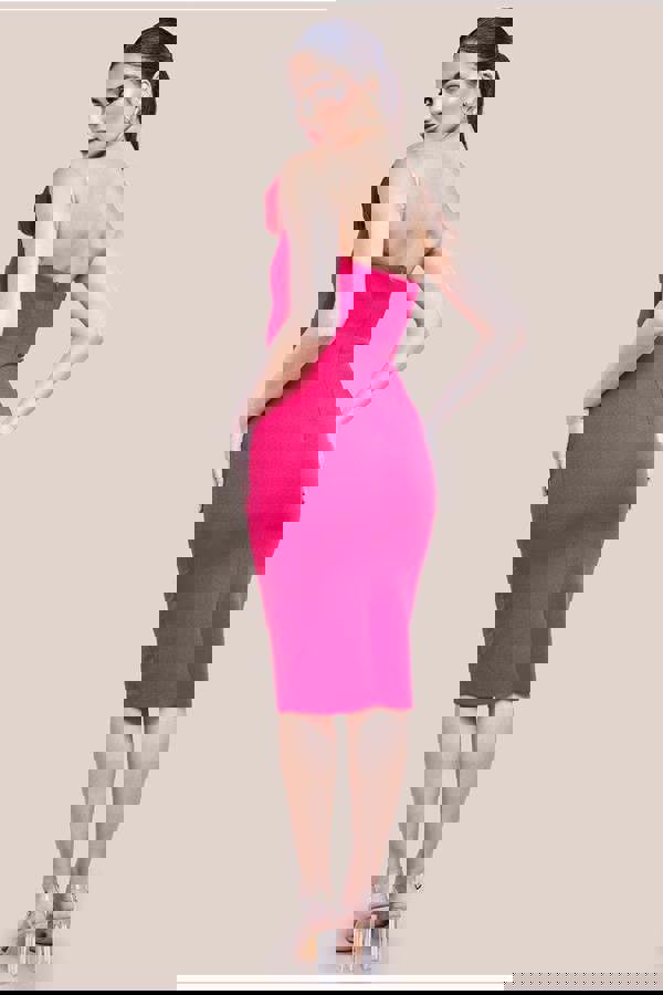 This Magenta dress boasts a classic bodycon fit that effortlessly accentuates your curves, ensuring you feel confident and glamorous all evening long.