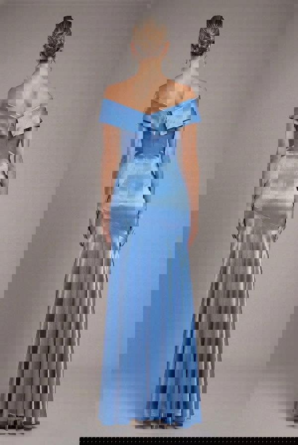 Effortlessly glamorous and irresistibly feminine the Goddiva Satin Off Shoulder Pleated Maxi Dress in Dusty Blue is made for nights out and special occasions.