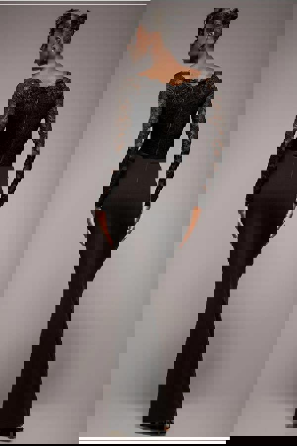 Exude effortless glamour in the Goddiva Scalloped Lace Bodice Long Sleeve Bardot Maxi Dress in black.