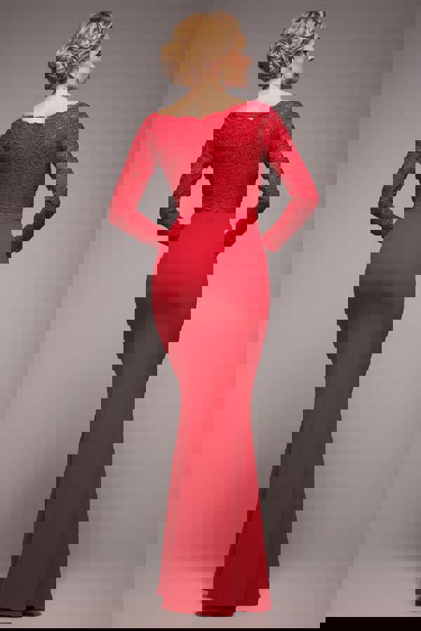 Exuding timeless elegance, the Red Scalloped Lace Bardot Maxi Dress is a refined choice for women seeking glamour with sophistication.