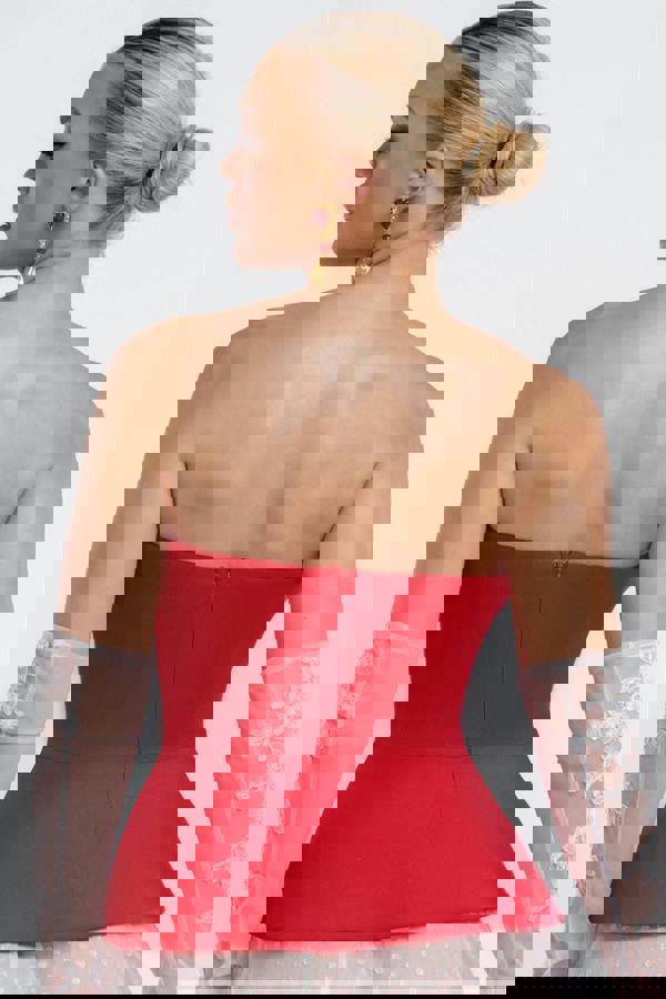 Featuring a flattering peplum hem and structured boobtube style, it enhances your curves for a polished, yet sexy look.