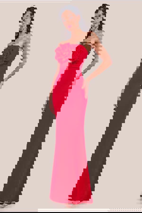 Adorned with a mesmerising rose corsage detailing, this red dress exudes romance and sophistication, adding a touch of whimsical charm to your ensemble.