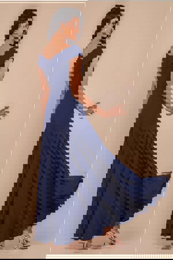Serving timeless sophistication with a sultry twist, the Goddiva Scuba Crepe Off Shoulder Front Split Maxi Dress in navy blue is your go-to for a romantic evening or standout wedding guest look.