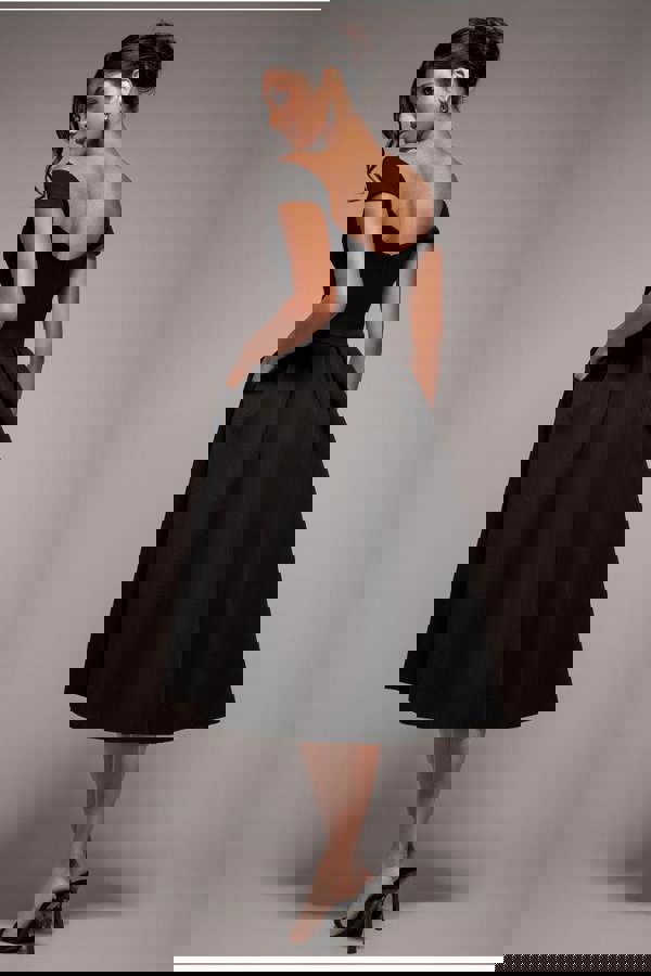 Whether you're dancing the night away or mingling with guests, this little black Scuba Foam Skater Midi Dress ensures you'll steal the spotlight.