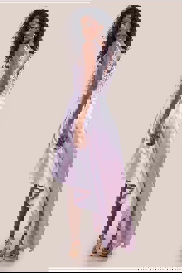 Whether you're attending a wedding or a black-tie event, this sequin and satin dipped hem midi occasion dress is sure to make you feel like a true star.