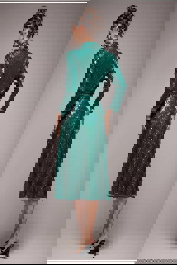 This stunning emerald sequin midi dress is a versatile choice that's ideal for wedding guests, romantic date nights, and lively parties.