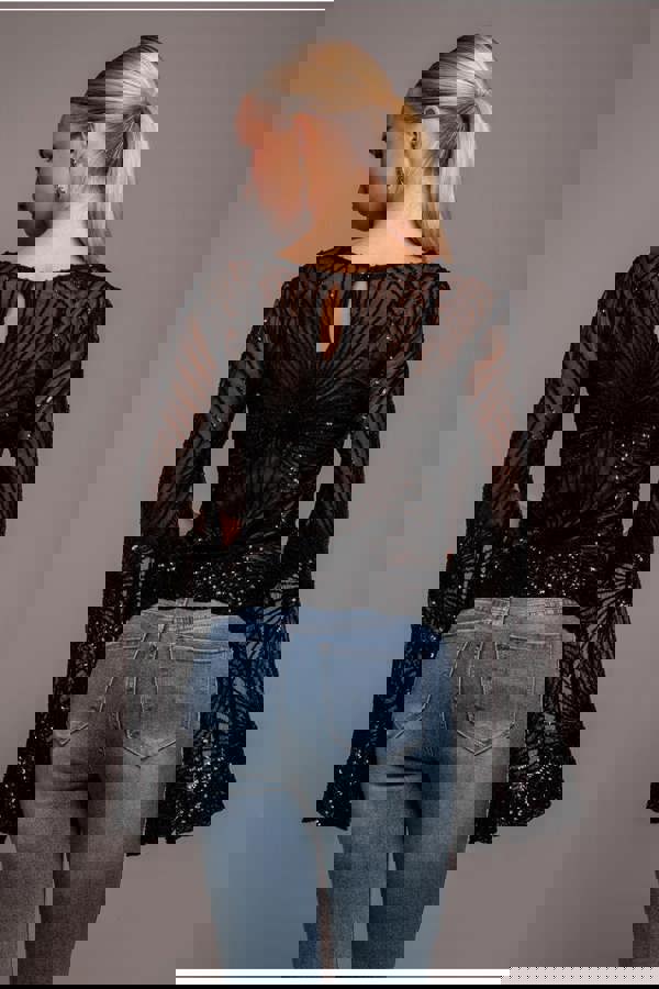 Dazzle effortlessly in the Goddiva Sequin Starburst Cape Sleeve Top in Black, designed for nights out and unforgettable special occasions.