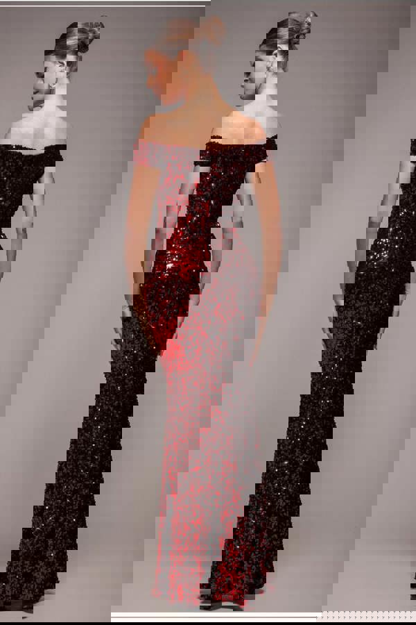 Dripping in decadence, the Goddiva Sequin Velvet Bardot Evening Maxi Dress in Red is your ultimate statement piece for the season.
