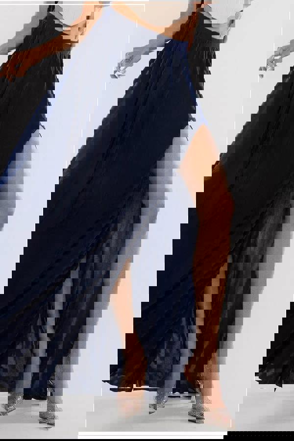 Effortlessly chic and versatile, the Goddiva Side Split Soft Touch Maxi Skirt in Airforce Blue, Black, Blush Pink, Sage Green & Navy are a must-have addition to your wardrobe.