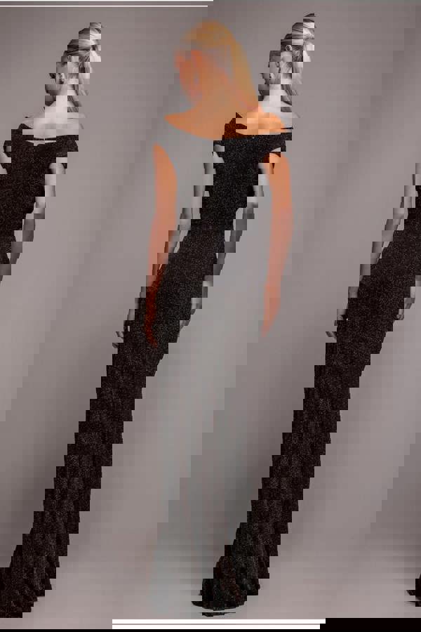 A glamorous fusion of elegance and allure, the Goddiva Sparkle Lurex Cowl Neck Off The Shoulder Maxi Dress in Black Gold offers a sultry, luxurious look that’s perfect for any special occasion.