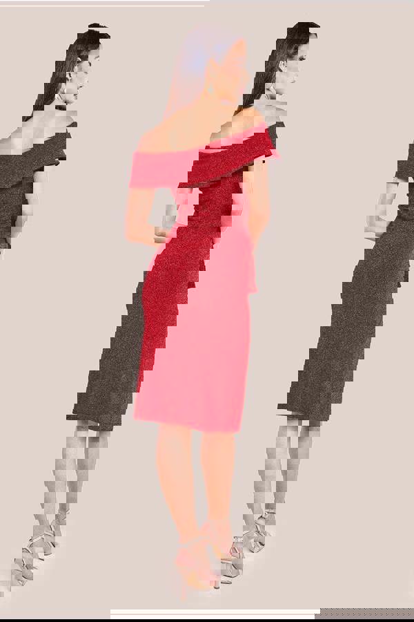 Get ready to dazzle and turn heads with our Lurex Bardot Midi With Waterfall Ruffle.
