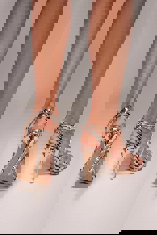Strappy sophistication meets irresistible glamour with the Goddiva High Heeled Sandal in rose gold.