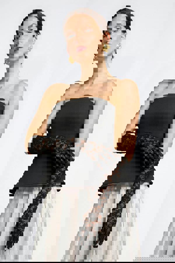 Designed to add a touch of vintage glamour, these under-the-elbow gloves feature delicate gathered detailing, creating a graceful silhouette.
