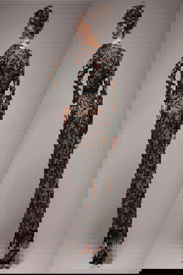 This black Tassel & Sequin Midaxi Dress is perfect for those who want to make a bold statement.