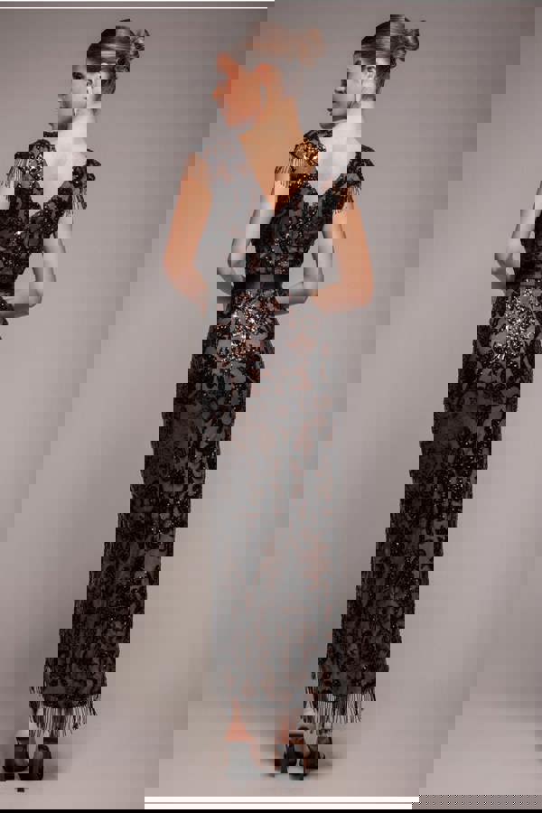 With its all over sequin embroidery and tassel detail on the hem and sleeves, this tassel split maxi occasion dress will be an instant hit wherever you go! Team with some heels and a bold lip, we guarantee you will feel like a million dollars wearing this stunning piece!
