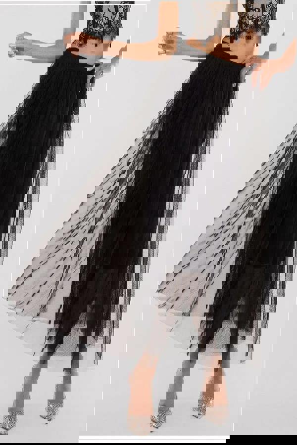 Effortlessly cool with a sultry edge, the Goddiva Tulle Gathered Midaxi Skirt in Black is the ultimate piece for mixing and matching.