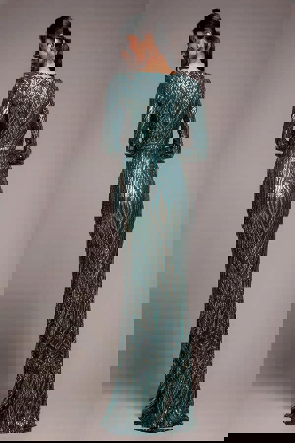 Teamed with an updo, heels and clutch bag, this long sleeve emerald occasion dress will have you feeling like the belle of the ball.