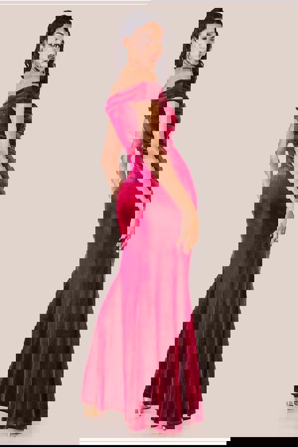Wrap yourself in sheer elegance with our Velvet Bardot Maxi with Split Dress, the perfect choice for your next special occasion.