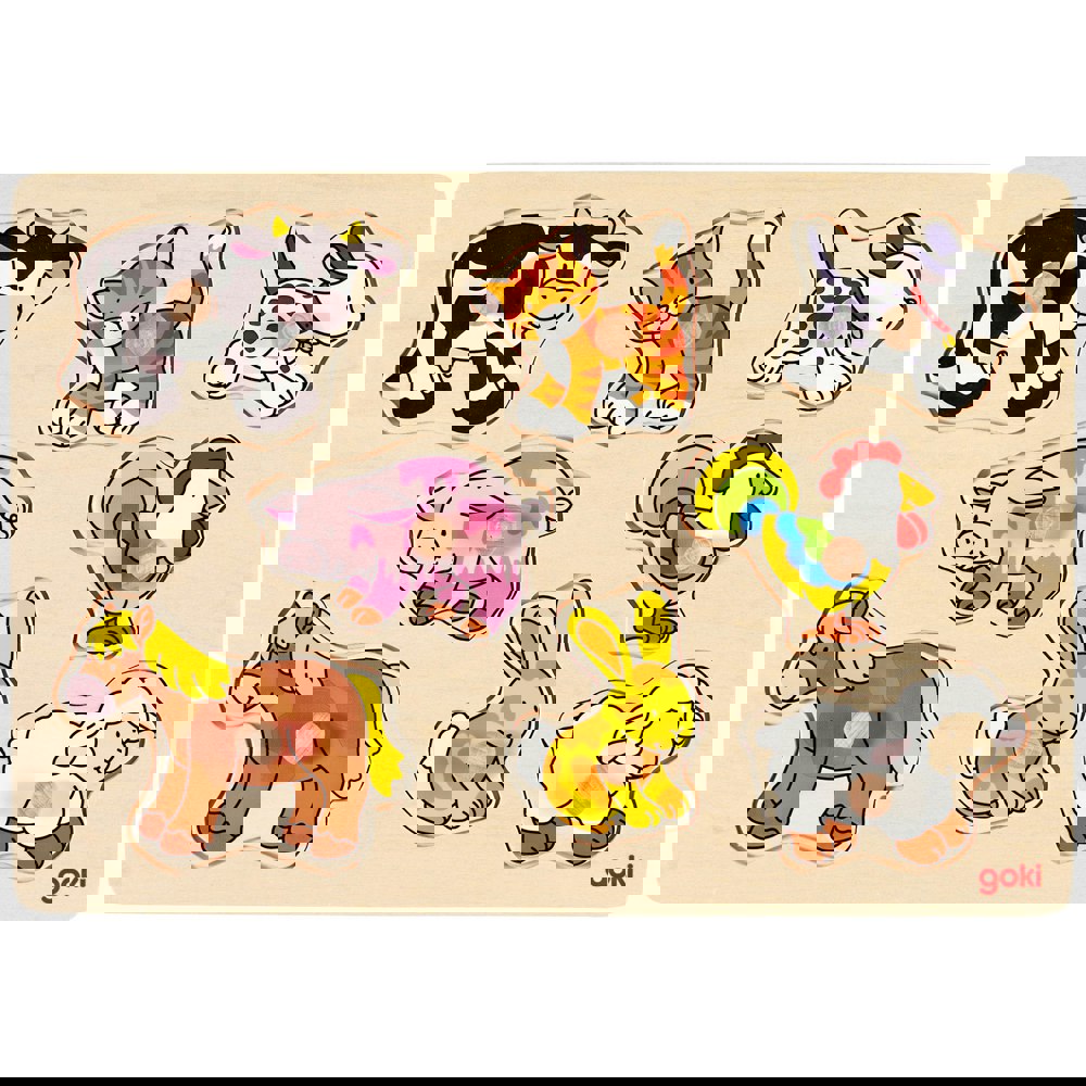 This extra large puzzle features cute baby farm animals, fit the eight pieces depicting the baby farm animals into the correct slots on the 30 x 21 x 2. 5 cm puzzle board.