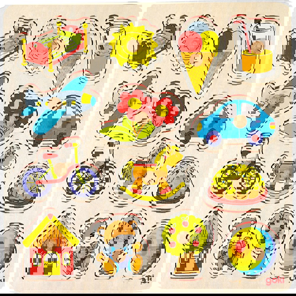 Discover a world of joy and learning with our extraordinary Lift out Puzzle – Objects! Crafted with your child’s development in mind, this puzzle is designed to delight and educate young minds. The extra-large wooden knobs make it easy for little hands to grasp and manoeuvre, promoting fine motor skills and hand-eye coordination. As your child engages with this puzzle, they’ll encounter a charming array of child-friendly motifs, including a bright-coloured ball, a friendly rocking horse, a playful apple tree, and a delectable ice cream cone. Each piece of this puzzle tells a story, encouraging your child’s imagination to soar. Watch as they piece together the colourful ball, setting it into its rightful place. See them trot along with the rocking horse, creating their own adventures. Let them pluck apples from the tree and dream of picnics under the shade. And of course, indulge in the delicious delight of the ice cream cone. Designed to entertain and educate, the “Lift Out Puzzle” is the perfect addition to your child’s playtime routine. It not only provides hours of fun but also fosters cognitive development and problem-solving skills. Bring the joy of everyday objects to life with this exceptional puzzle. Order the Lift out Puzzle – Objects today at Toytastic and let your child’s imagination take flight.