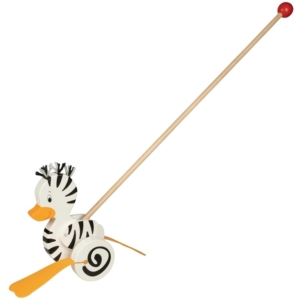 Made from wood, this cute push-along wadding duck has the colouring of a zebra and also has flapping feet.