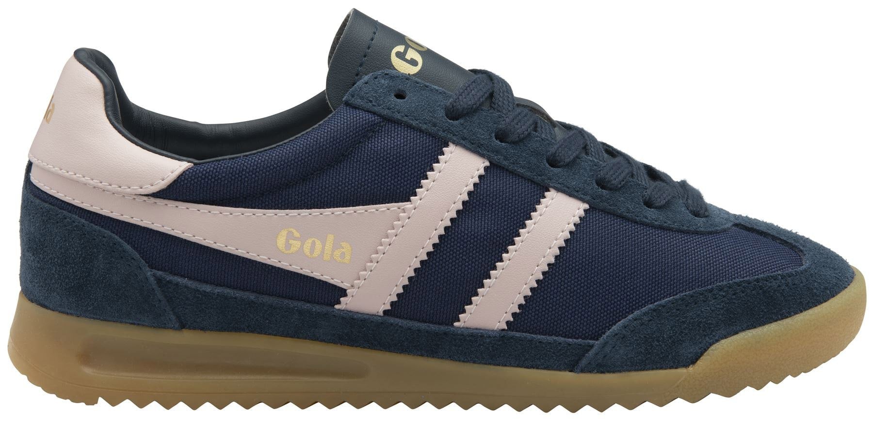 Sneaker featuring nylon uppers with suede toe trims for a stylish contrast.