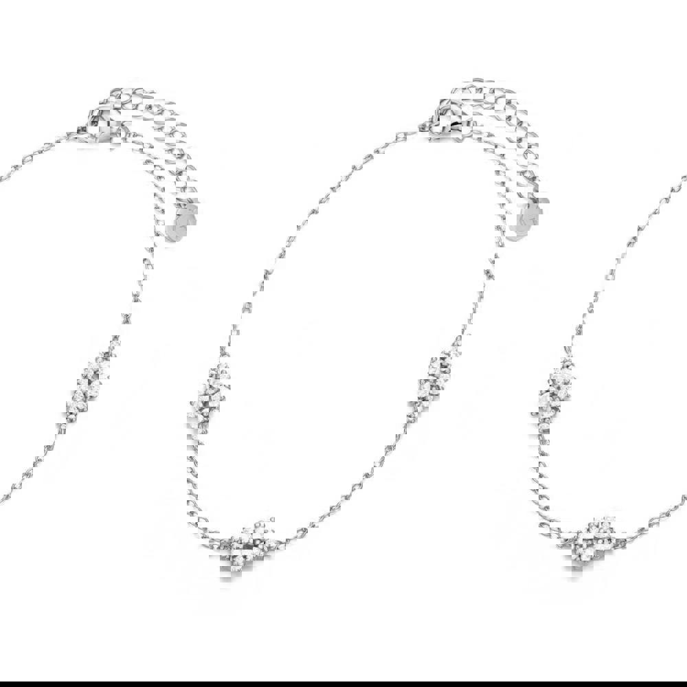 Delicate, feminine and timeless, the Crystal Cluster Station Bracelet is a contemporary classic that can be worn everyday or for special occasions. Featuring 10 varying sizes of super-sparkly cubic zirconia stones in three clusters, stationed along a fine link chain. Crafted from hypoallergenic 925 sterling silver, you can choose from finishes in rhodium (for a tarnish-resistant silver finish) or 18ct plated finishes. Plating is 1 micron thick- plated to last!