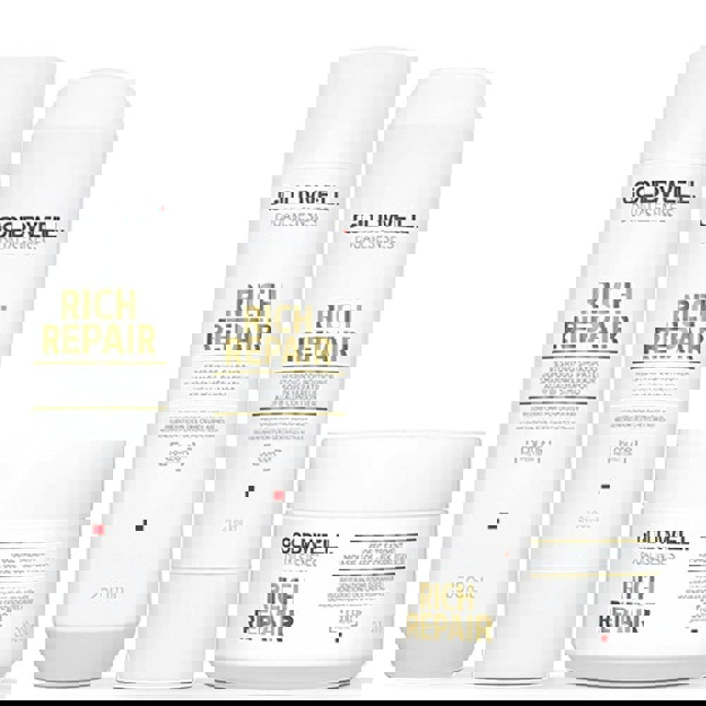 Goldwell Dual Senses Rich Repair Restoring Shampoo 250ml, Conditioner 200ml and 60 Second Treatment 200ml Pack is suitable for dry to damaged hair.