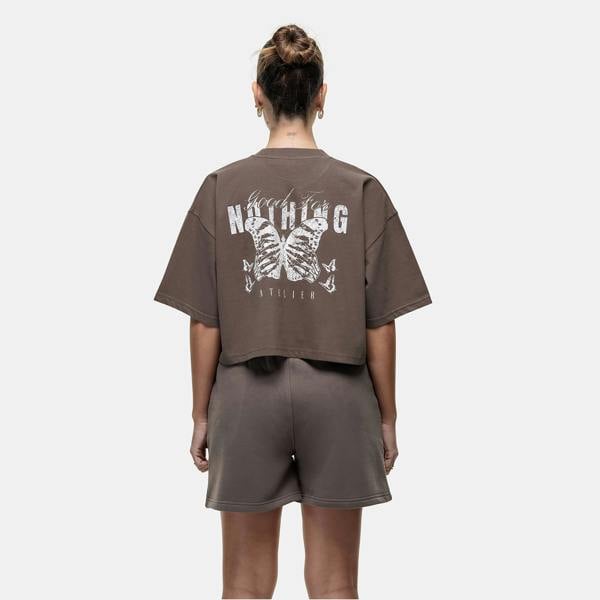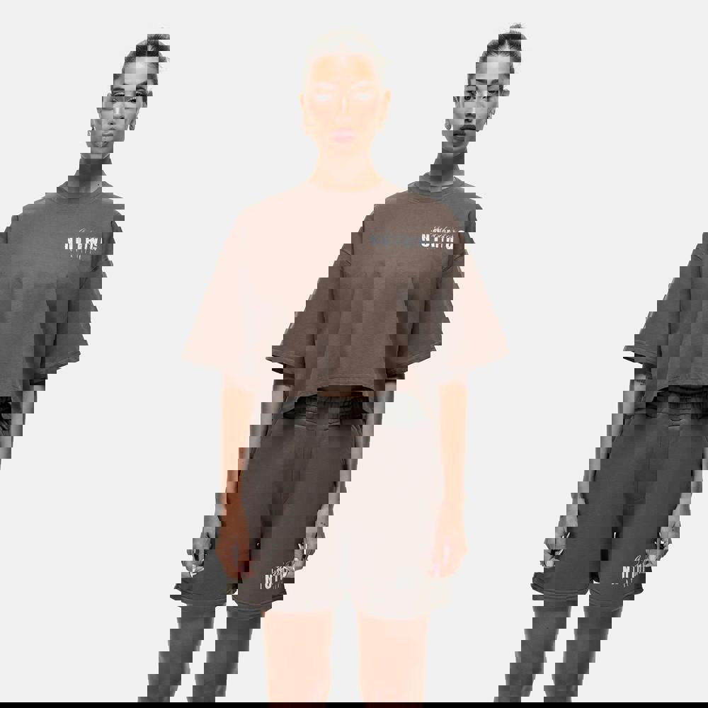 This relaxed-fit cropped t-shirt is perfect for off-duty styling. Made from ultra-soft, heavyweight cotton, it features a bold front print and dropped shoulders for a laid-back look. Pair with joggers or denim for easy everyday wear. Model is 5'5" and wears a size S.