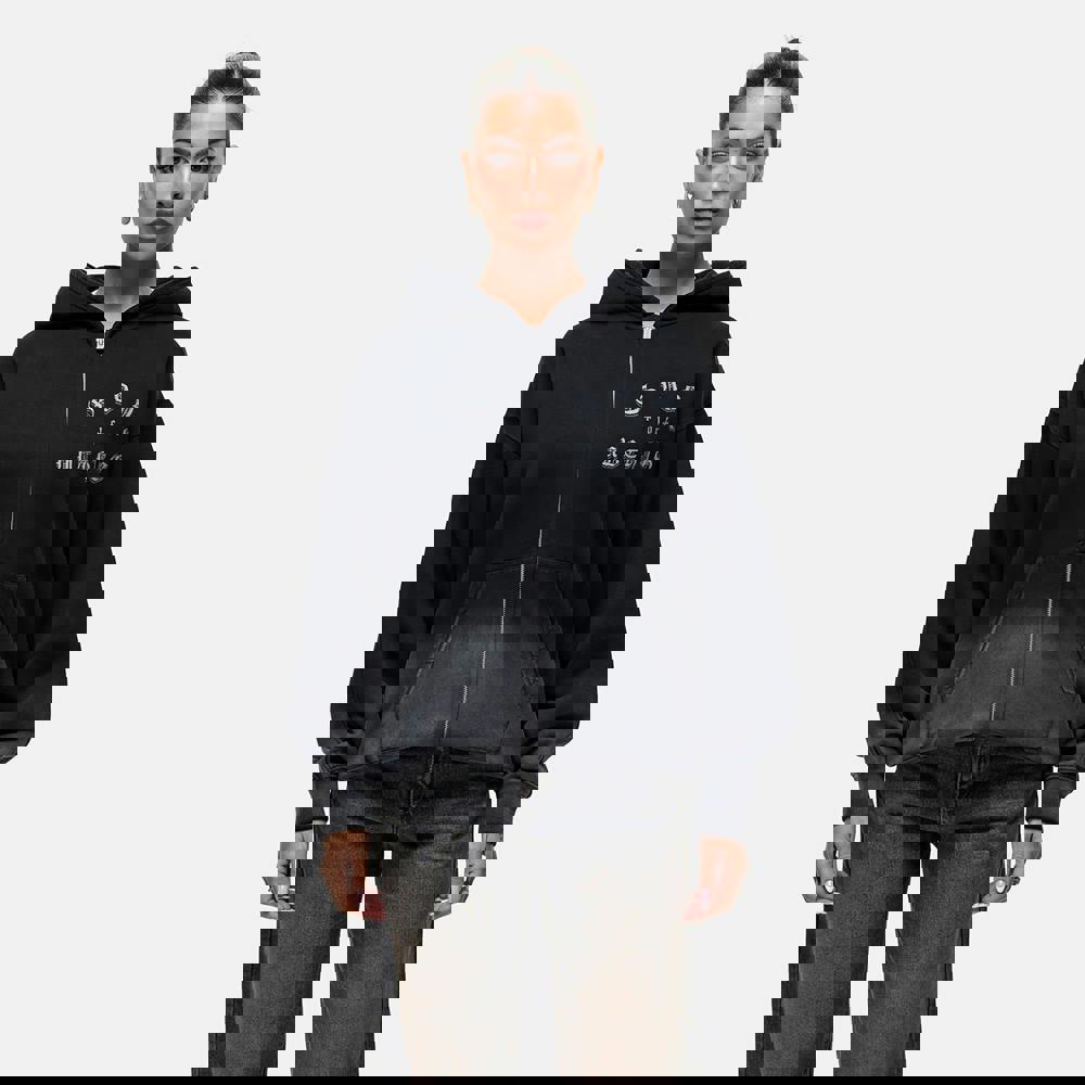 Bring some laid-back vibes to your look with this relaxed hoodie. This zip-up hoodie features a comfy, oversized fit and contrast print on the front. Made from soft, brushed-back fleece for ultimate comfort, featuring a washed dye effect towards the hem adds to its unique style. Keep it easy going and team it with your go-to jeans. Model is 5'5" and wears a size S.