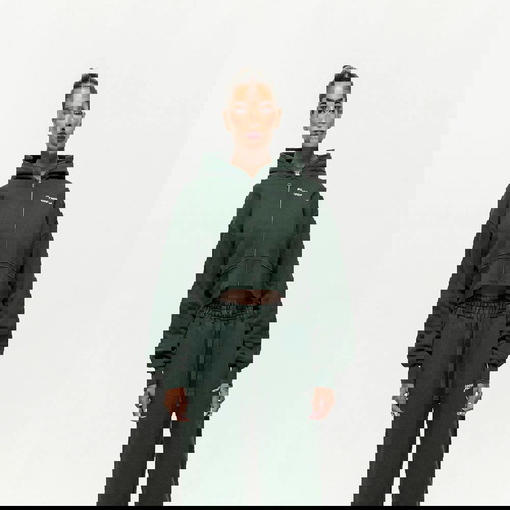 Elevate your wardrobe with this zip-through hoodie. It is designed in a cropped length and features long sleeves, drop shoulders, a hood, two side pockets, ribbed elasticated cuffs and waistband, and is finished with branding on the chest. Made from cotton fabric to ensure easy care and wear. Model wears UK size S.