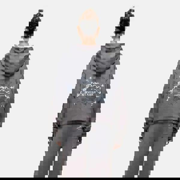 Stand out without saying a word in this oversized zip-through hoodie. Made from soft brushed back fleece cotton, this hoodie brings warmth and style in equal measure. Featuring a striking mix of spray effects, screen prints, and bold puff print detailing across the chest and sleeves. The oversized fit gives you that effortlessly relaxed look, while two front pockets and elasticated cuffs add practical finishing touches. Model wears UK size S.
