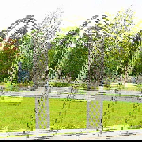 Made from wood, this garden arch is described as strong and durable. An arched roof and trellises on both sides provide space for vines, wisteria and climbing roses, helping you guide growth upwards for a more structured look in the garden.