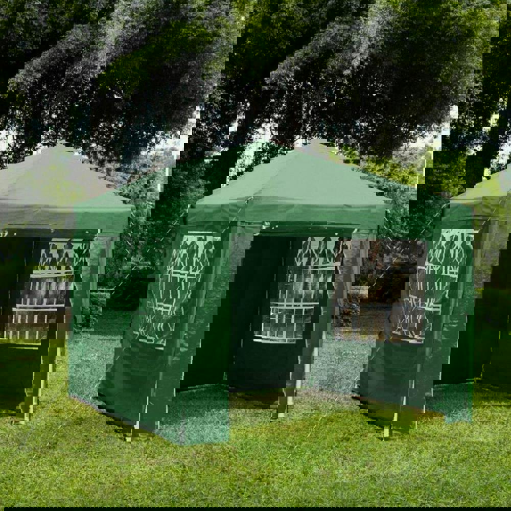 Built with a heavy duty frame and a polyethylene covering, this gazebo offers a straightforward solution for temporary outdoor cover. Finished in green, it brings a clean, classic look that suits a range of settings, whether you are setting up for a celebration or creating a shaded spot for day-to-day outdoor use.
