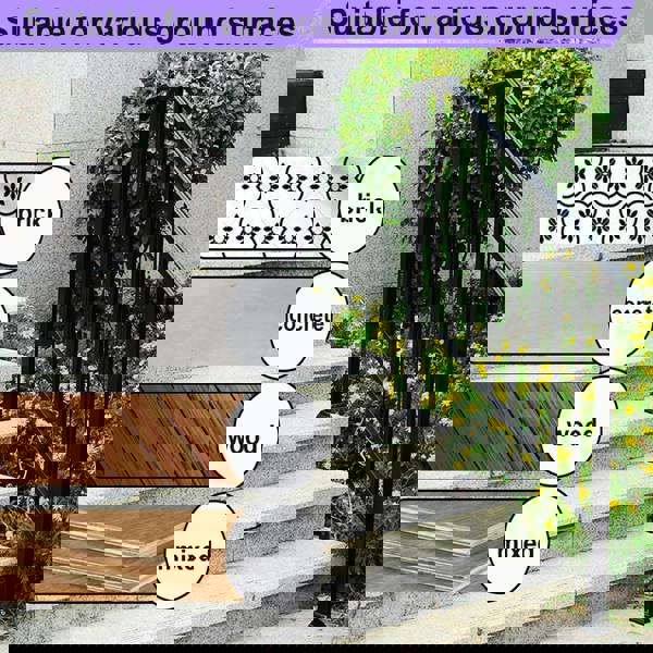 Suitable for outdoor use, this handrail can be installed on concrete, brick, and wood steps. It works well on porches, balconies, gardens, residential buildings, hotels, and garages, offering a supportive grab point where a wall or existing structure is not available for mounting.