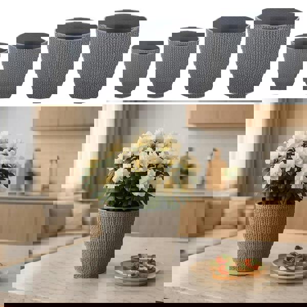 The Gr8 Garden Set Of 4 Grey Sumela Knitted Flower Plant Pot Planter With Tray Indoor Garden is designed to bring a neat, coordinated look to your planting at home. With a textured knitted stripe design, these grey planters suit a wide range of interior styles while offering a practical option for everyday plant care.