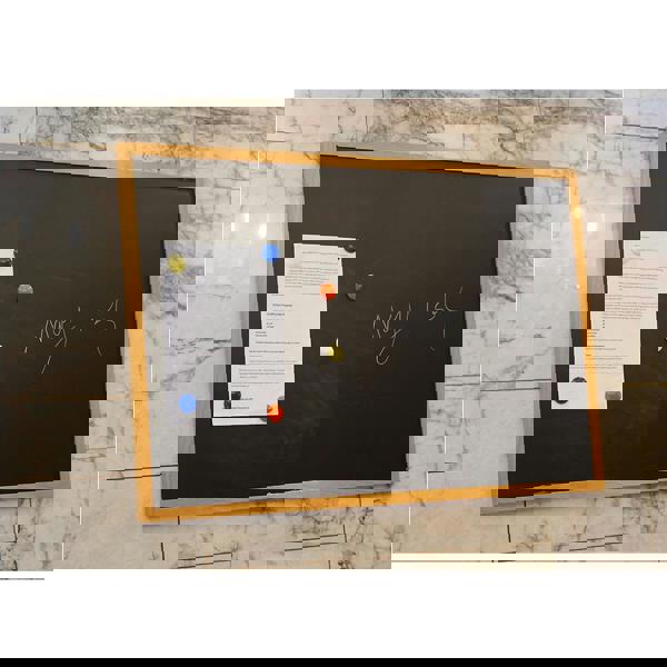 Finished with a wooden frame and a classic blackboard surface, it works well in a range of settings including the kitchen, office, classroom or dorm room. The magnetic backing lets you attach notes, photos and magnets securely, helping you keep important items close at hand while leaving the board clear for writing and quick updates.