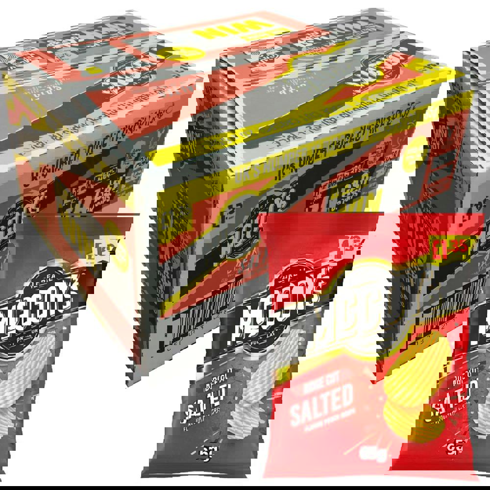 Crunchy, ridged potato crisps seasoned with classic salted flavour — a bold and simple snack favourite. These ready-salted crisps are cooked to perfection for that satisfying crunch and seasoned with a balanced salty taste.