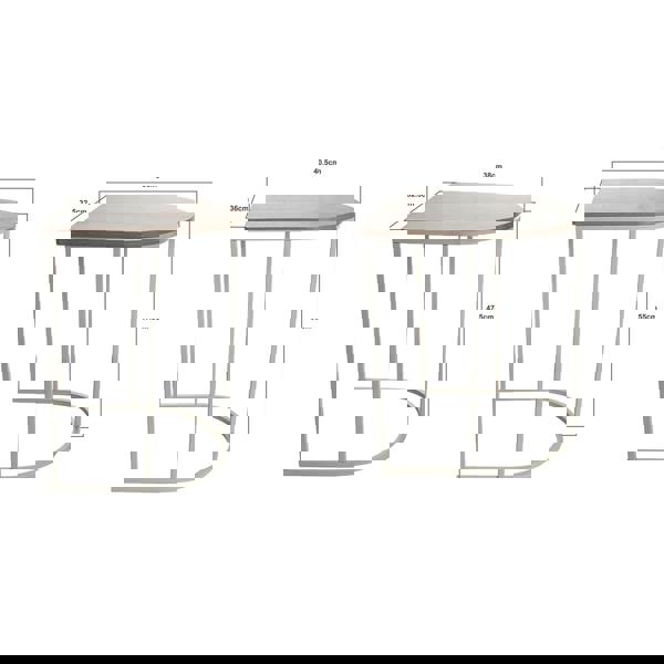 Each table features a warm wood-grain tabletop paired with a sleek white metal frame, creating a simple contrast that suits a wide range of interiors. The minimalist, industrial-inspired design works well beside a sofa or armchair, giving you a convenient spot for everyday items while keeping your layout flexible.