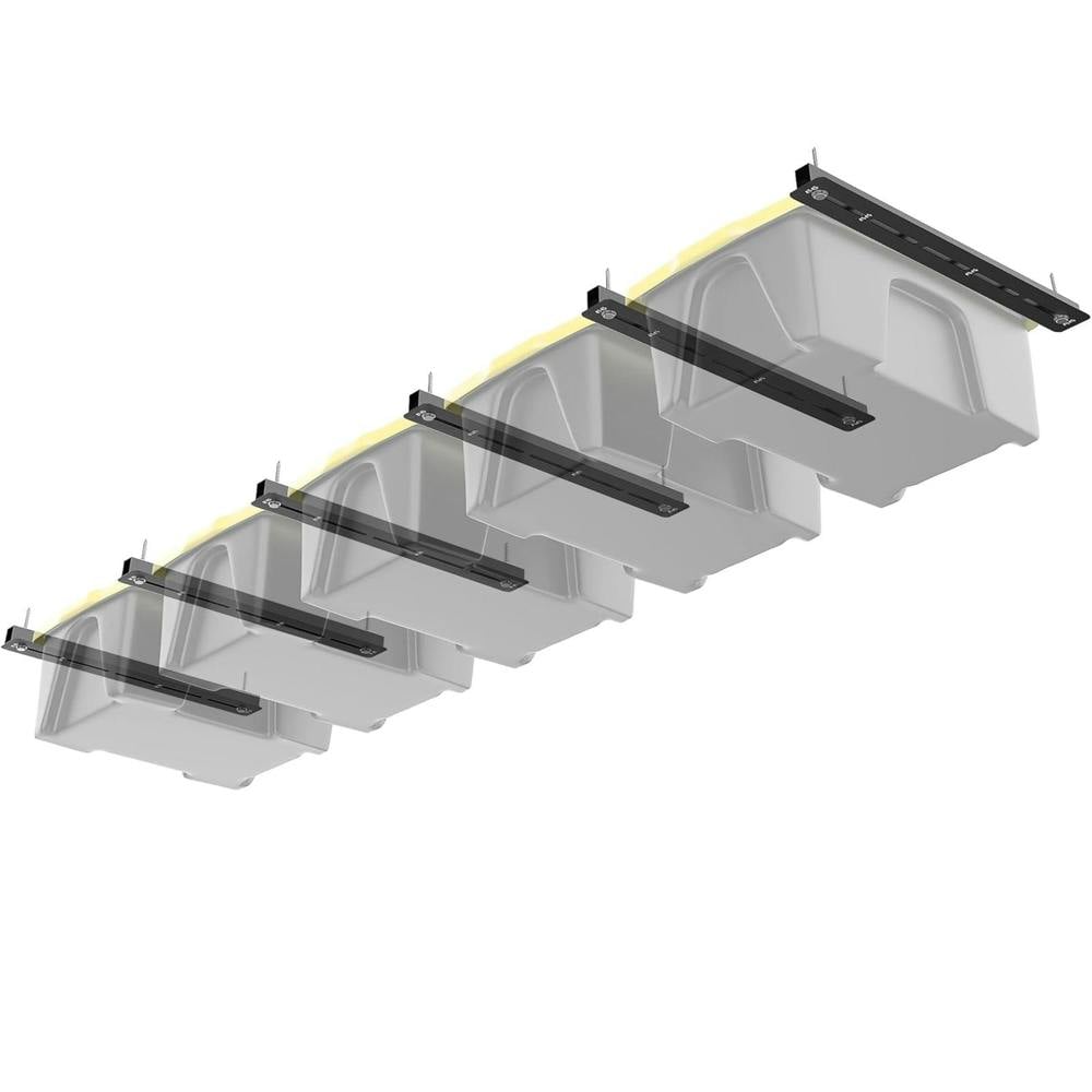 The Gr8 Home Overhead Storage Utility Bin Rack Brackets are designed to help you organise your space by storing utility bins overhead. Ideal for garages, workshops, basements and utility rooms, this ceiling rail organiser keeps items off the floor to help maintain a cleaner, less cluttered area.