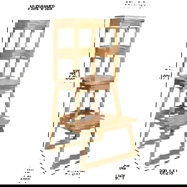 Finished in Natural, this learning tower is created for children aged 2–6 years. The stepped design helps children climb up and stand more comfortably while they watch, help and learn alongside you. A supportive frame surrounds the standing area to provide a more secure space during use, making it a useful addition to family routines in the kitchen.