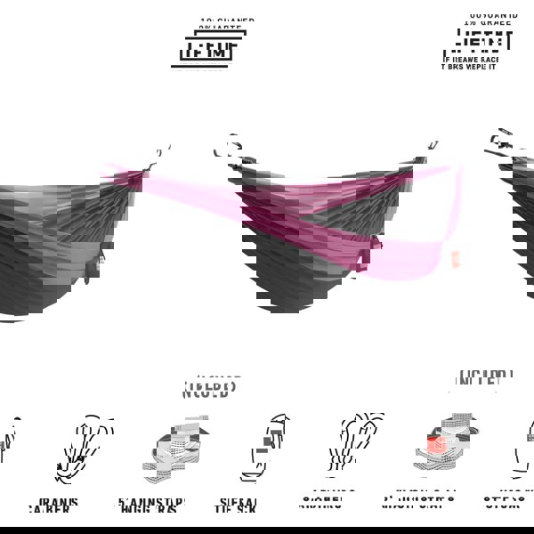 Getting away is good for the soul. Whether you’re hiking on the other side of the world or taking a break in your backyard, our packable two-person parachute nylon hammock is ready to help you take a load off while you plot your next adventure. With the included carabiners and five foot hammock straps, this affordable all-in-one hammock kit is ready to hang. No need to purchase extra straps or rope.