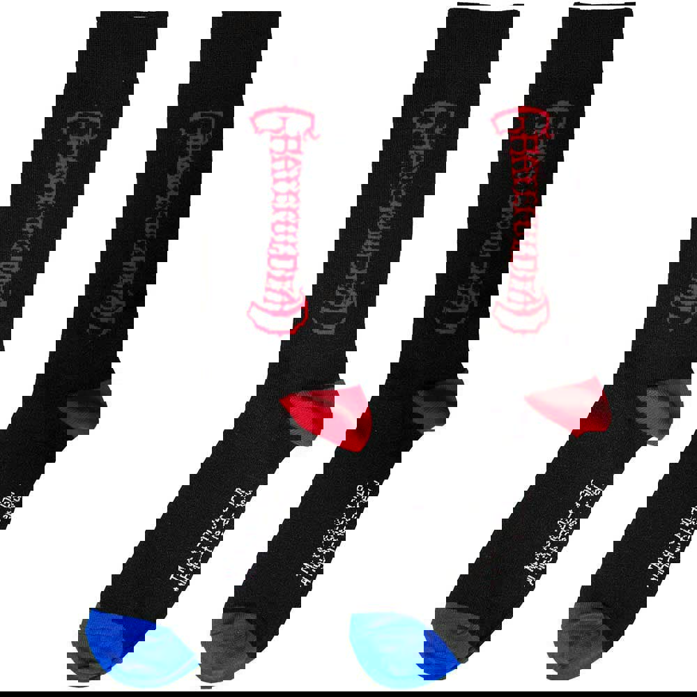 Official licensed Grateful Dead Unisex Ankle Socks featuring the 'Vertical Mono Logo' design motif. High quality Ankle Socks available in a black colourway. These premium quality, colourful, all-over pattern cotton rich woven socks are guaranteed to stand out in the crowd.