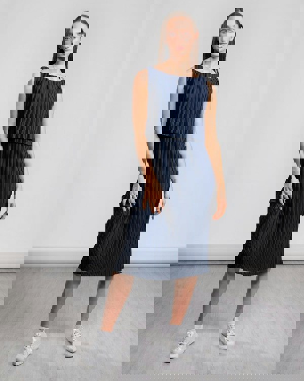 The Narcissus jersey dress features a pared-back silhouette, in a relaxed jersey fabric, expertly offset with pretty plissé and a flattering double layer. Wear now with ankle boots and lace-up sandals later in summer.