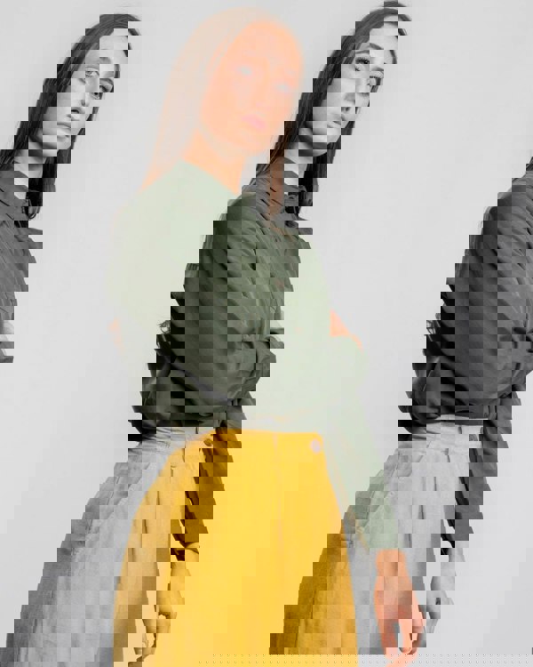 Master smart-casual dressing effortlessly with the Tamar Shirt. The rich palm green hue of this long-sleeved shirt is a sumptuous but versatile tone, lending itself to pair well with neutral tones. The button-front shirt has a relaxed fit and a super soft feel, creating a separate that you'll reach for to pair with everything from casual denim to work-appropriate skirts.